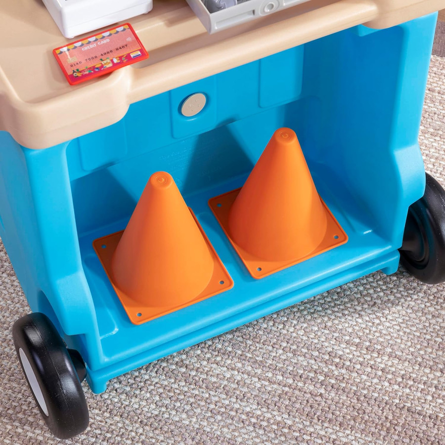 Il Mercato STOP&GO è il gioco ideale per piccoli imprenditori in erba! Questa divertente bancarella educativa offre un'esperienza di gioco realistica e stimolante, con pompa di benzina, casello, coni, lavagna e una cassa funzionante. I bambini possono simulare l'acquisto di carburante, scrivere offerte del giorno o gestire il proprio mercato. Grazie alle ruote integrate, la bancarella è facilmente trasportabile da un luogo all’altro. Perfetta per l’uso sia in ambienti interni che esterni, è dotata di un ombrellone per proteggere dal sole durante le giornate estive.