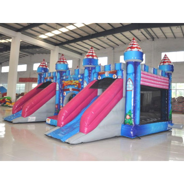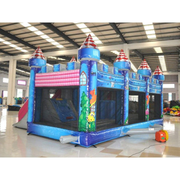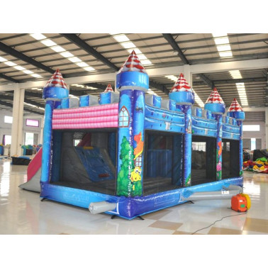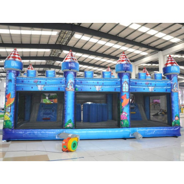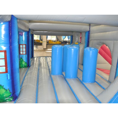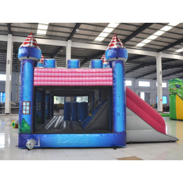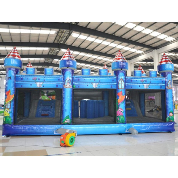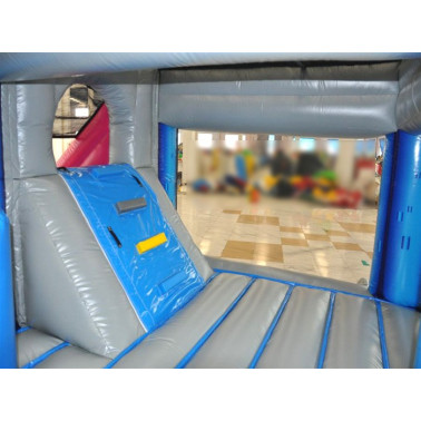 Sorretto da sei torri in tema il gonfiabile è dotato di doppio scivolo ed ostacoli interni con tema Castello Infuocato. Conforme alla UNI EN 14960. Ideale per parchi gioco, parchi divertimento, giochi all'aperto, spiagge, stabilimenti balneari, aree di intrattenimento in generale, ludoteche, aree di ristoro, alberghi, ristoranti e pizzerie, sala feste.