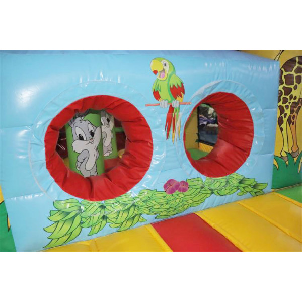 Coloratissimo percorso ad ostacoli con sei palme di sostegno, scivolo ed ostacoli interni. Divertente ed impegnativo allo stesso tempo, dotato di reti di protezione perimetrali. Conforme alla UNI EN 14960. Ideale per parchi gioco, parchi divertimento, giochi all'aperto, spiagge, stabilimenti balneari, aree di intrattenimento in generale, ludoteche, aree di ristoro, alberghi, ristoranti e pizzerie, sala feste.