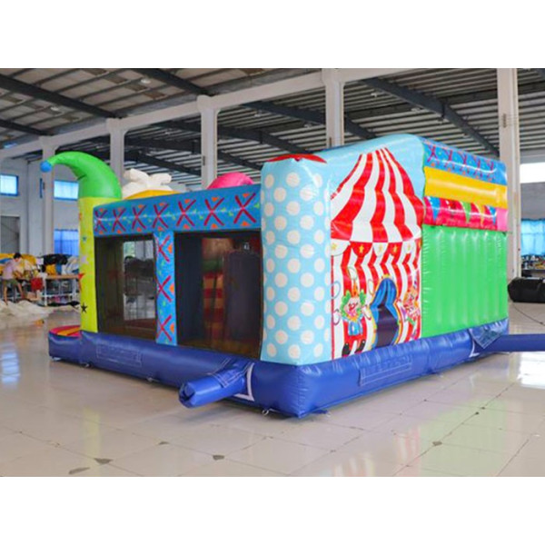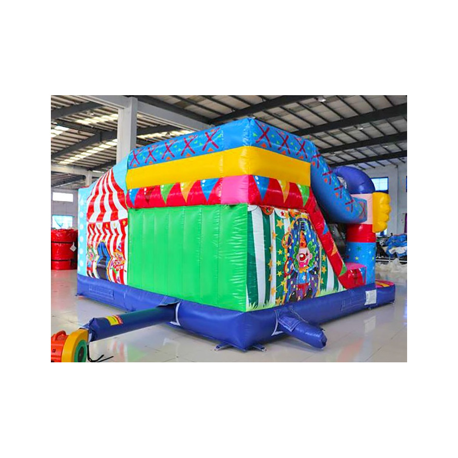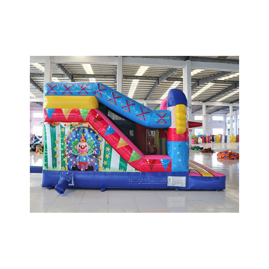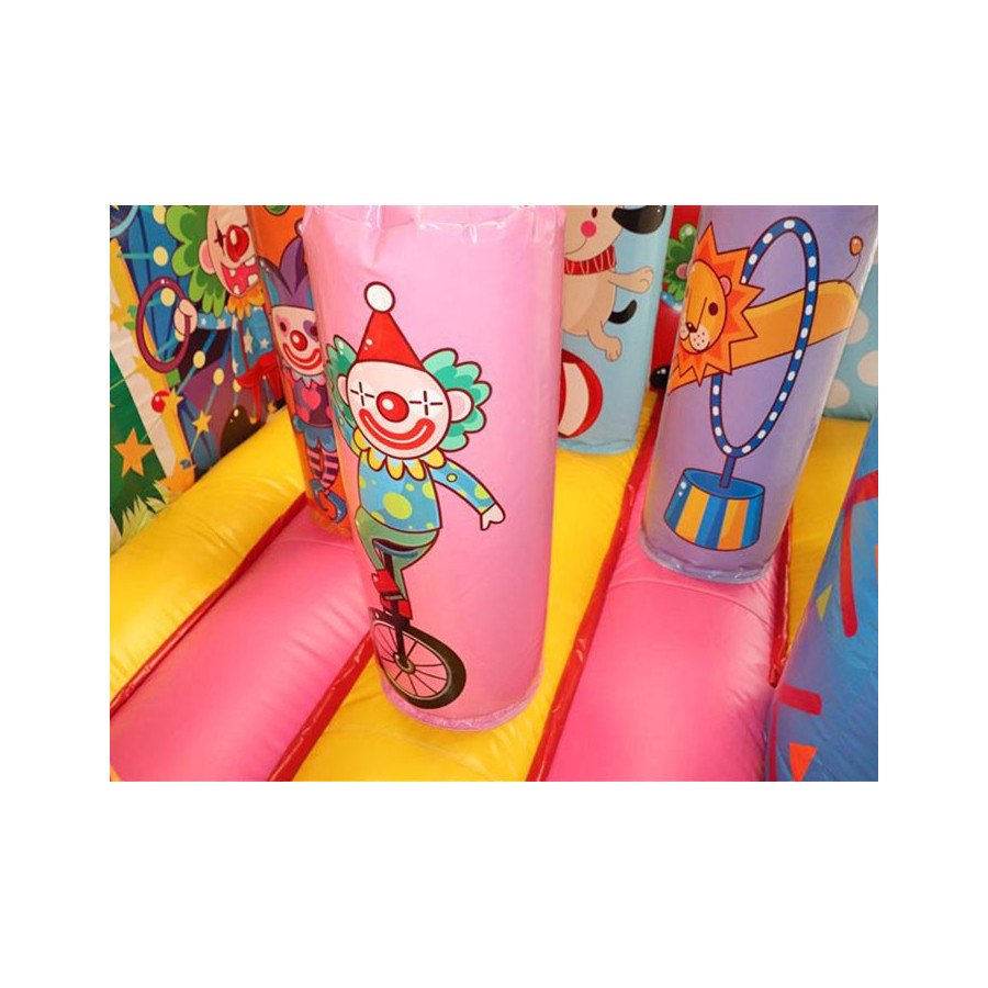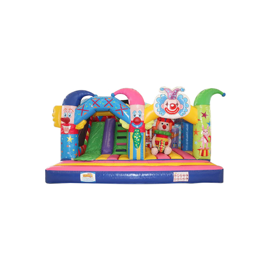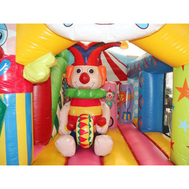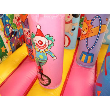Coloratissimo percorso ad ostacoli con scivolo ed elementi decorativi che richiamano il tema del gonfiabile. Divertente ed impegnativo allo stesso tempo, dotato di reti di protezione perimetrali.Conforme alla UNI EN 14960 Ideale per parchi gioco, parchi divertimento, giochi all'aperto, spiagge, stabilimenti balneari, aree di intrattenimento in generale, ludoteche, aree di ristoro, alberghi, ristoranti e pizzerie, sala feste.