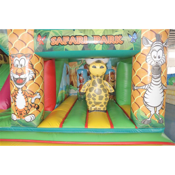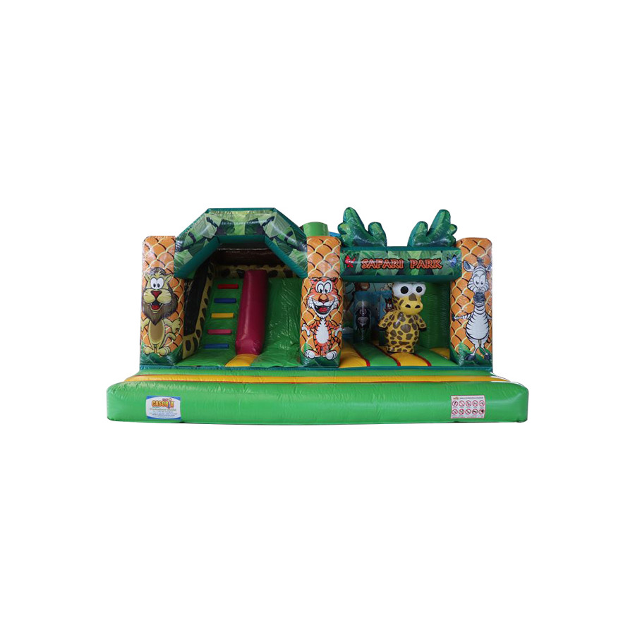 Coloratissimo percorso ad ostacoli con scivolo ed elementi decorativi che richiamano il tema del gonfiabile. Divertente ed impegnativo allo stesso tempo, dotato di reti di protezione perimetrali.Conforme alla UNI EN 14960 Ideale per parchi gioco, parchi divertimento, giochi all'aperto, spiagge, stabilimenti balneari, aree di intrattenimento in generale, ludoteche, aree di ristoro, alberghi, ristoranti e pizzerie, sala feste.